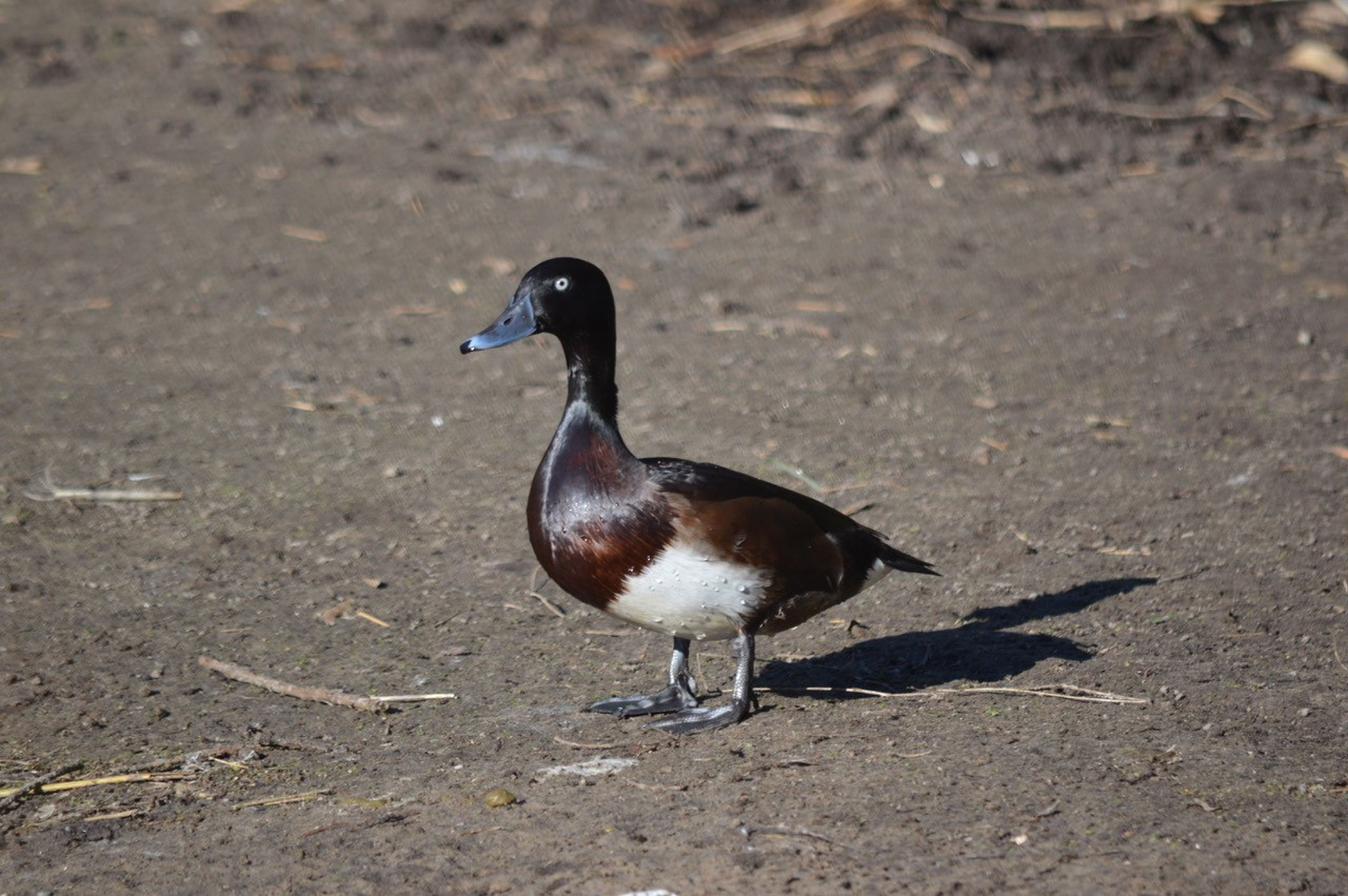 De Baers witoogeend zoekt zijn eten onder water. Hij duikt helemaal onder water