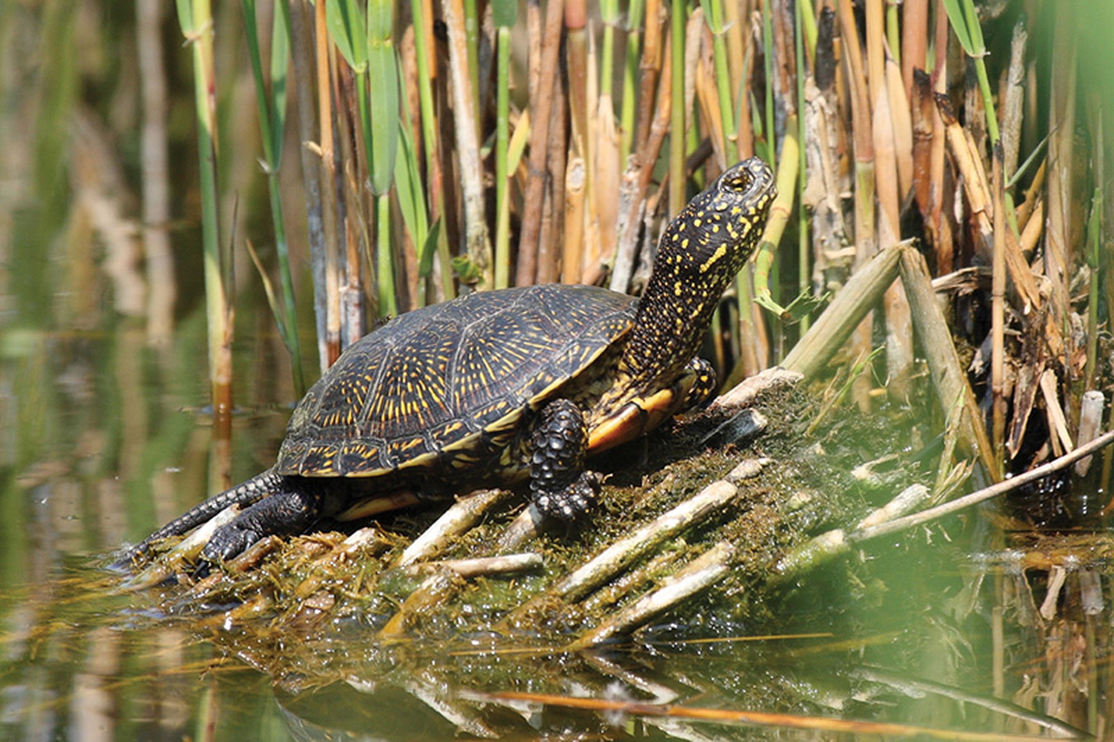 In de modder op de bodem van het water houden moerasschildpadden een winterslaap. Ze trekken zich dan terug in hun schild. Tegen het einde van de lente worden ze wakker.