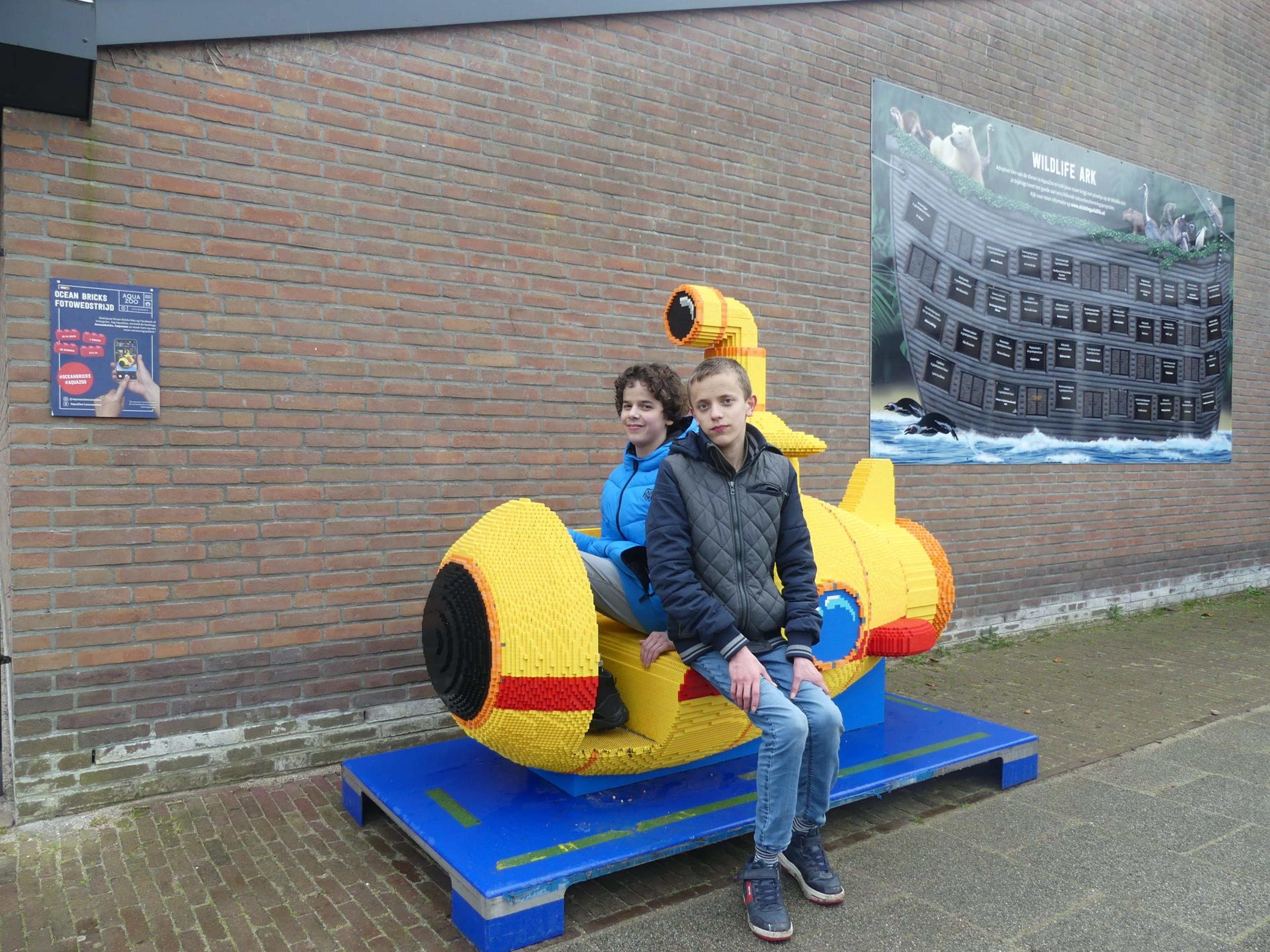 Eén van deze bezoekers is een moeder met haar twee zonen. Glunderend zitten Jasper en Maarten in de Bricks onderzeeër, opgebouwd uit maar liefst 88.770 steentjes. Ze komen al vele jaren in AquaZoo en hebben zojuist de Bricks Elfstedenspeurtocht afgerond. “Het was heel erg leuk,” zegt Jasper. “Ik vind de orka het mooiste en de zeeschildpad en octopus ook.” Maarten beaamt dit. “Wel heel veel werk om dit te maken!” zegt hij bewonderend.