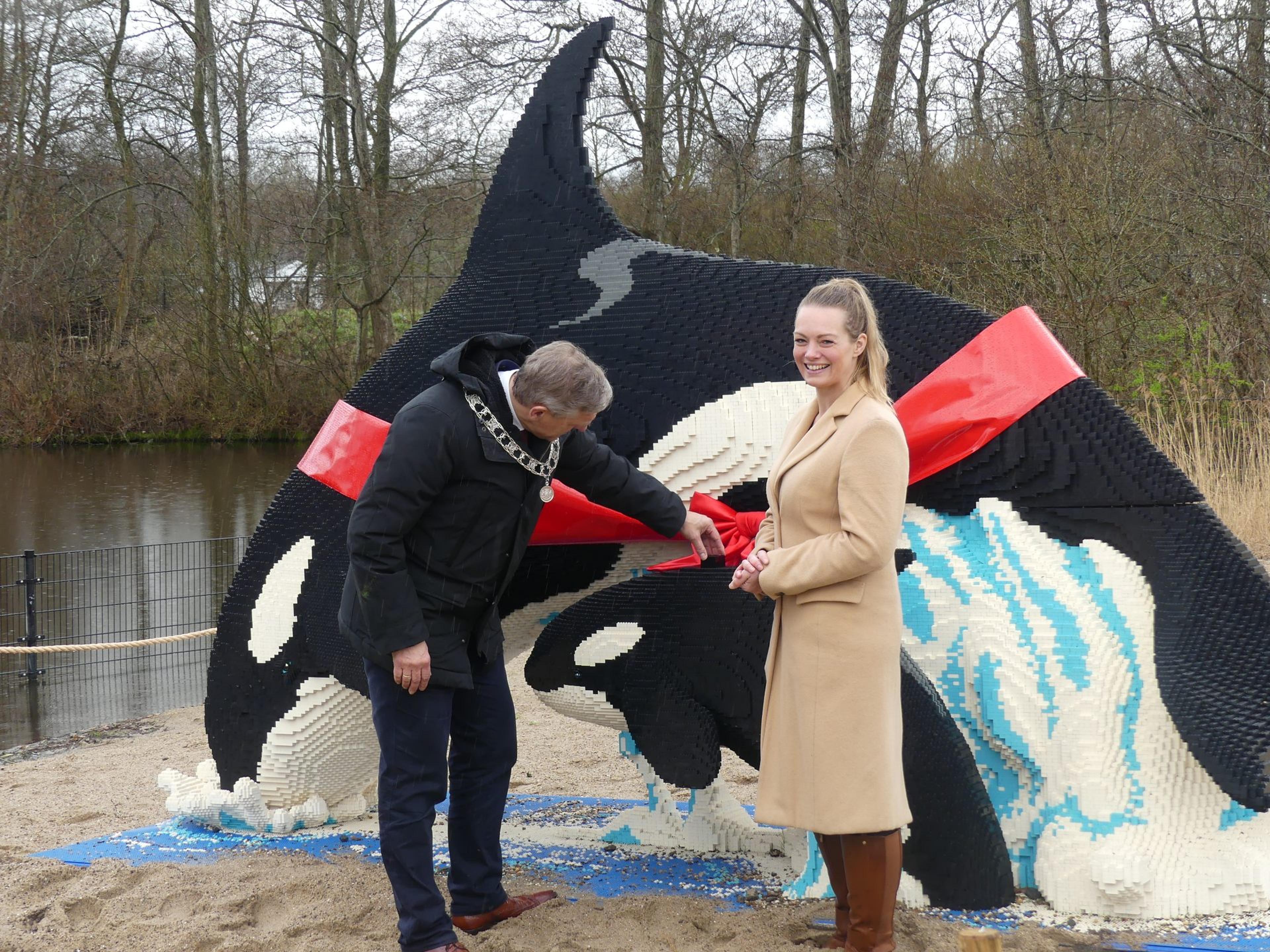 Burgemeester Buma legt laatste bouwsteentje op de orka en opent hiermee Ocean Bricks