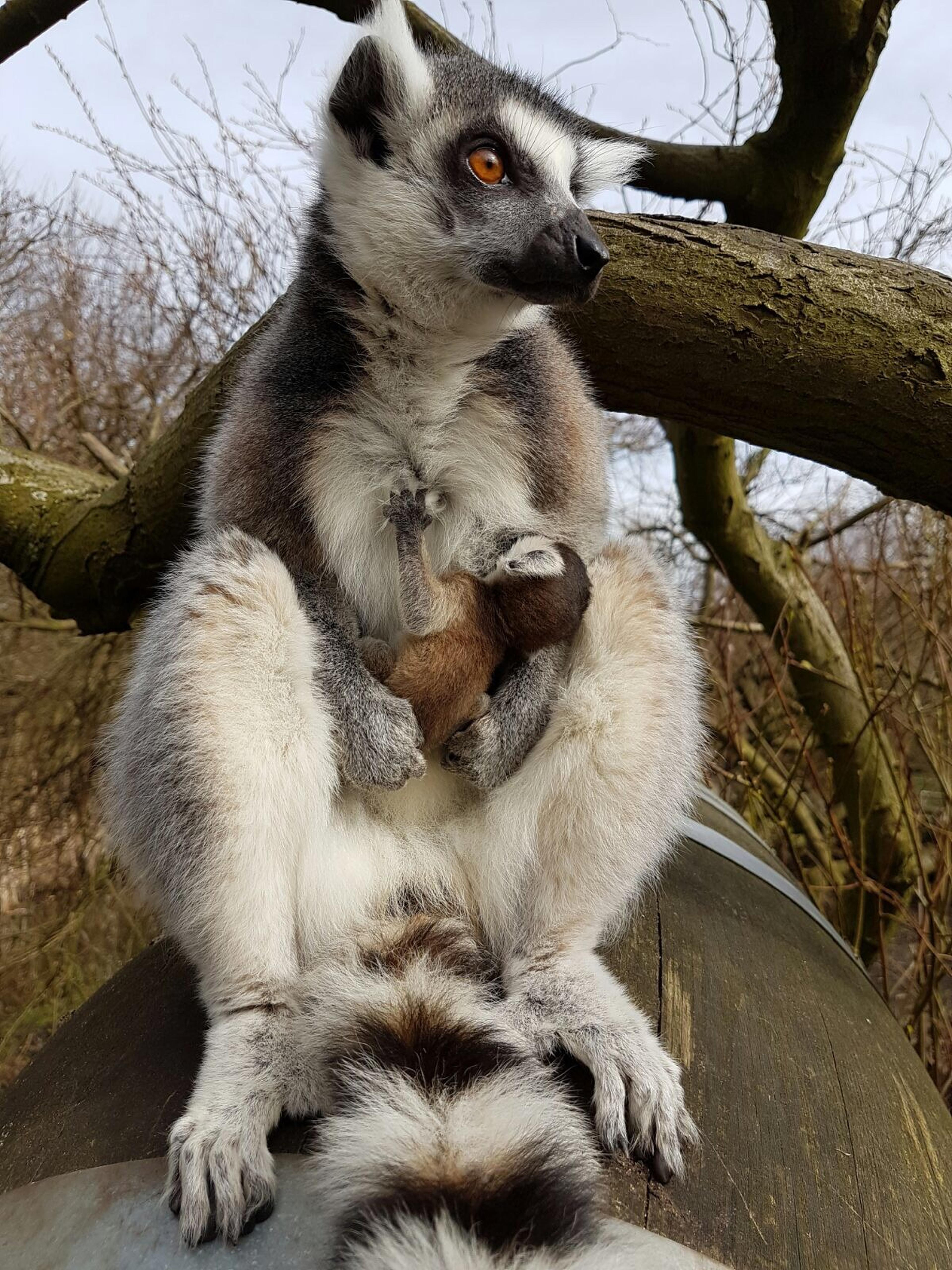 Hoogstwaarschijnlijk worden er binnenkort nog meer ringstaartmaki’s geboren, want de verzorgers verwachten dat er meer vrouwtjes in blijde verwachting zijn! De eerste paar weken zit de jonge maki nog vastgeklampt aan de buik van zijn moeder. Daarna verhuist het jong naar haar rug en begint hij al voorzichtig de wereld om zich heen te verkennen en te spelen met zijn soortgenoten.