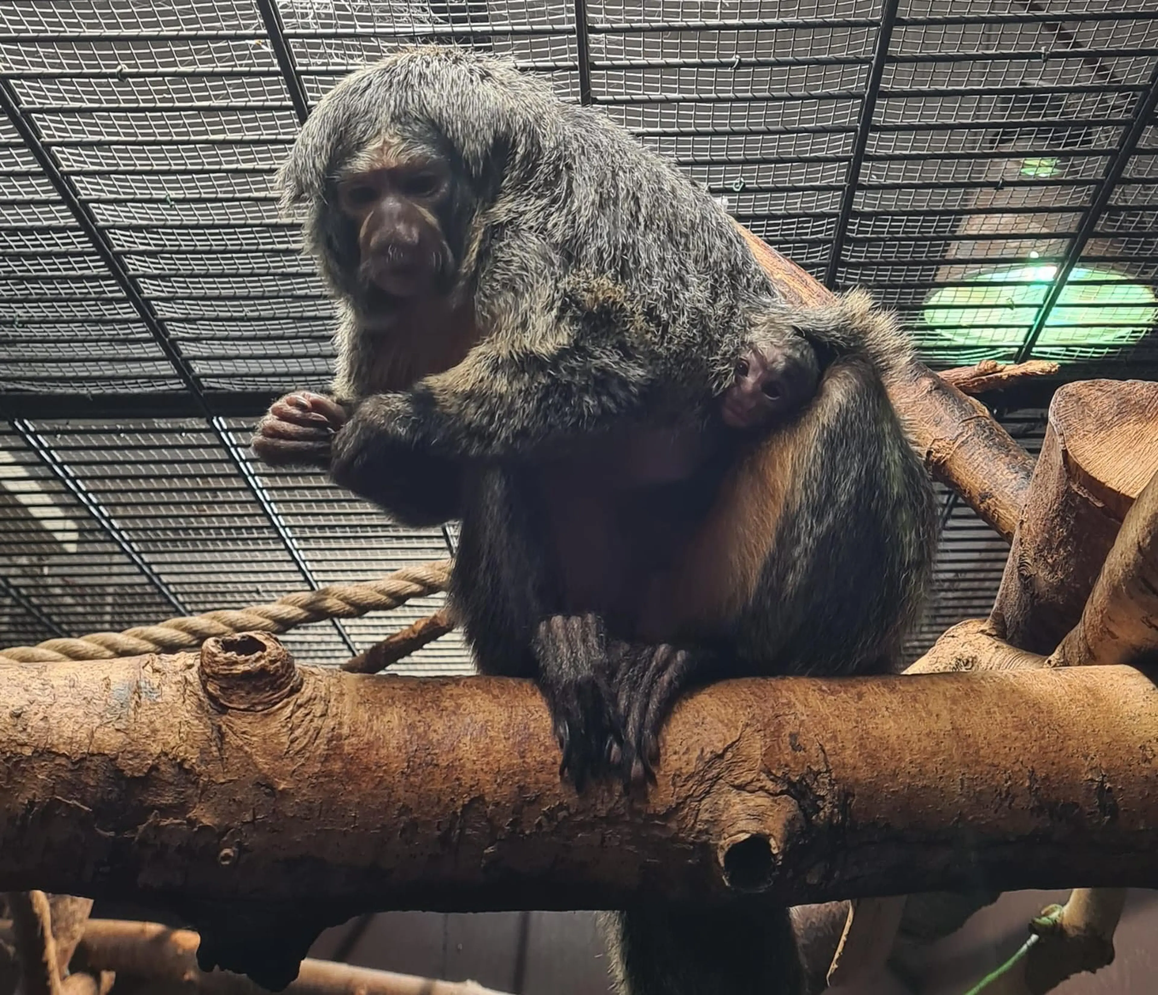In AquaZoo Leeuwarden is deze week een witgezichtsaki geboren. De moeder en het jonge dier maken het goed.
